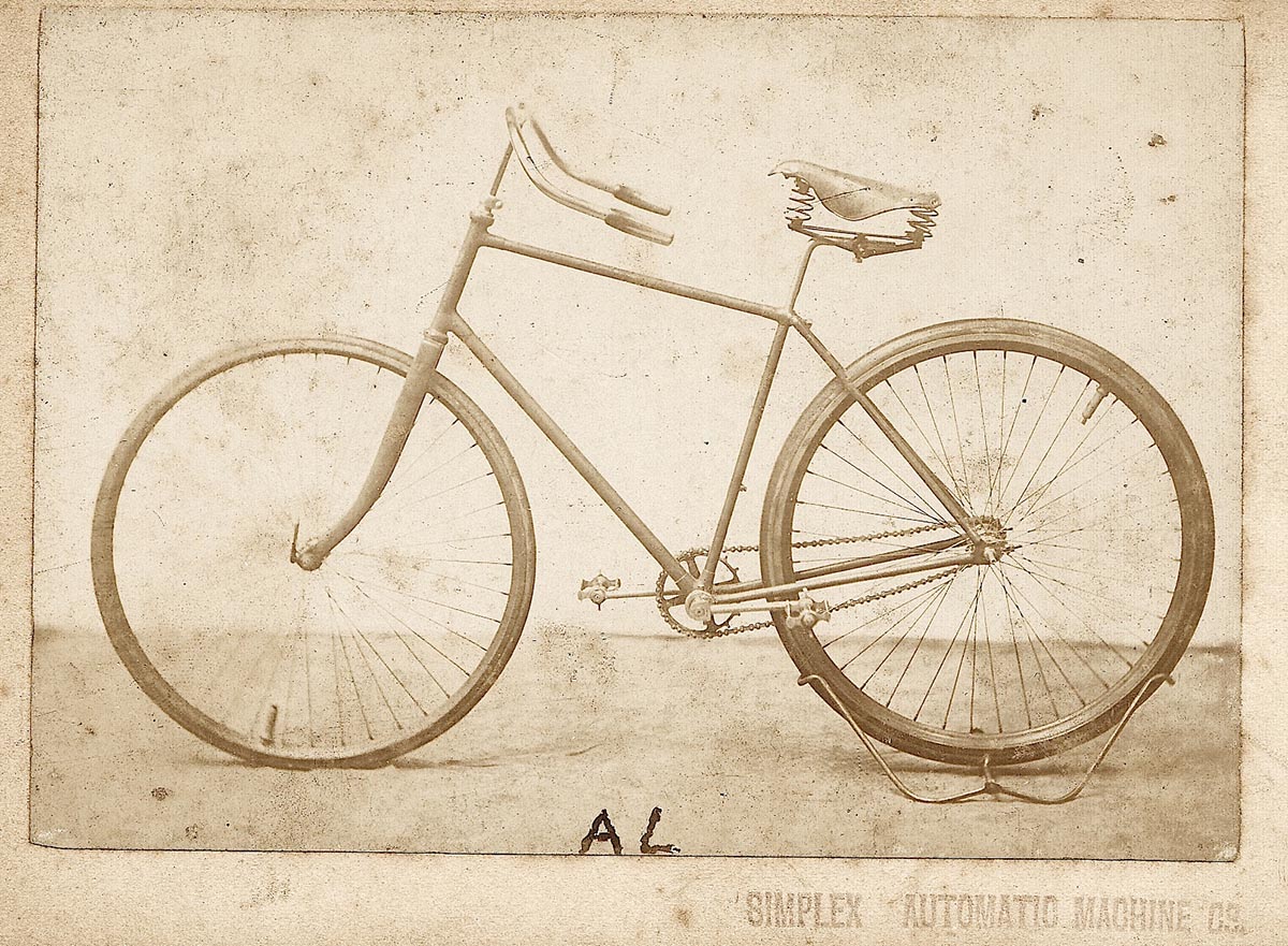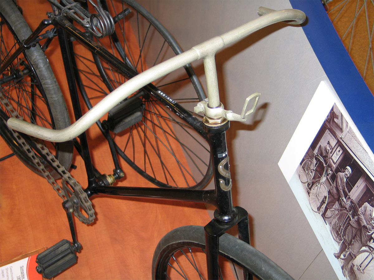 This Simplex (built in Amsterdam) is in the collection of the Batavus museum in Heerenveen, Netherlands. We are pretty sure it is an original Simplex: compare it to the 1894 advertisement picture - look at details like the oversized head bearings and the attachment of the rear mudguard, in the middle of the seat tube.