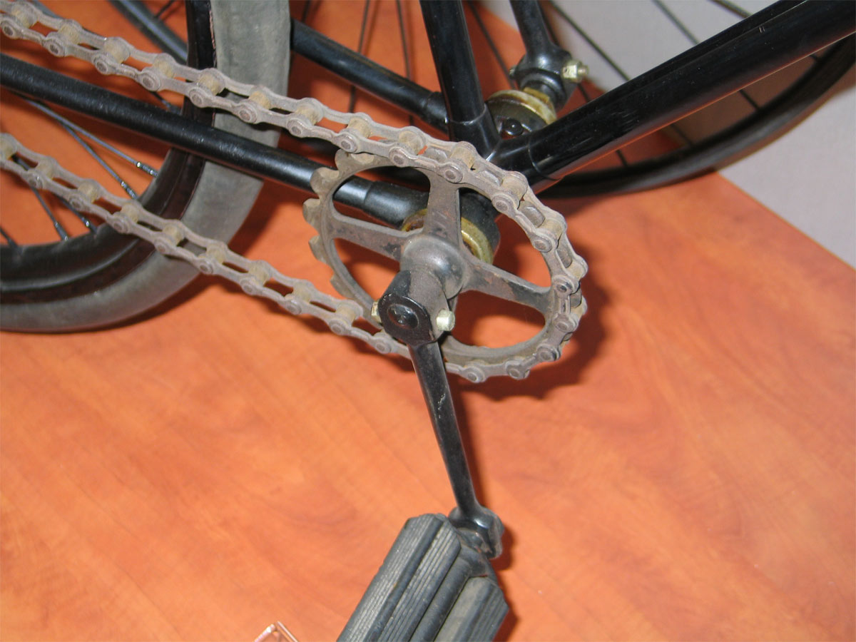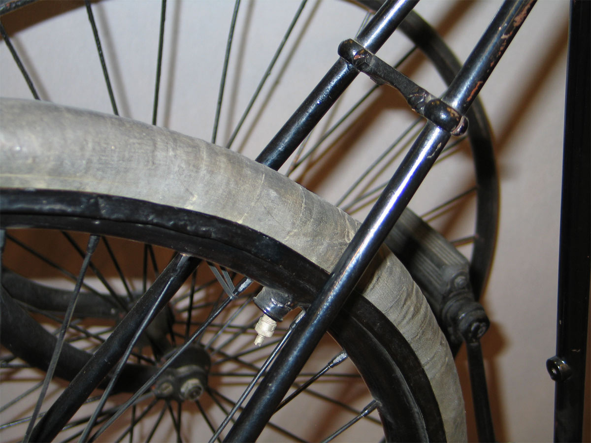 The bicycle in the museum has some characteristic features, like special brass dustcaps on the bearings of hubs and crank axle.